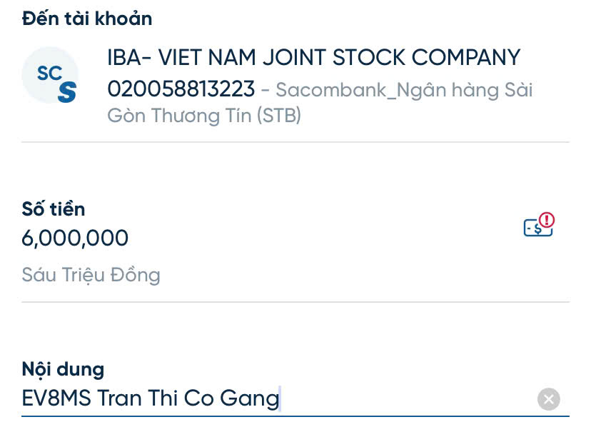 Minh họa 6: Ví dụ về cách thực hiện chuyển khoản lệ phí thi